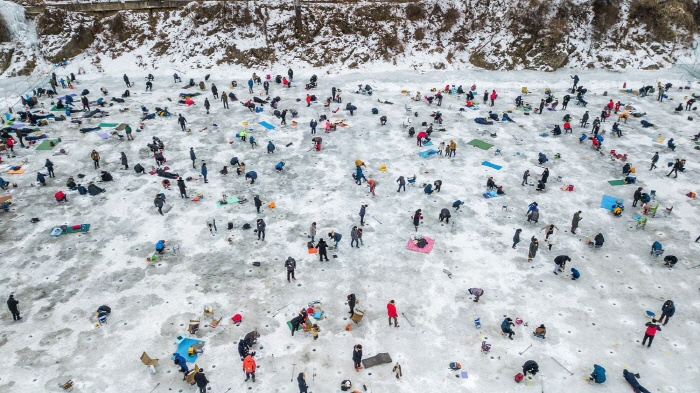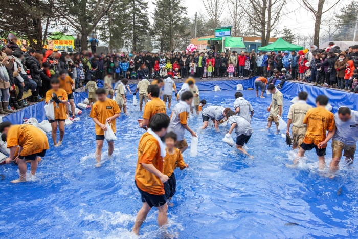 추운 겨울 양평 얼음위에서 즐기는 빙어낚시 및 겨울놀이 축제