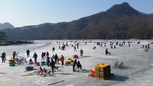 -꽁꽁 언 산정호수 위에서 즐기는 스릴만점 빙상체험 "산정호수 썰매축제"
