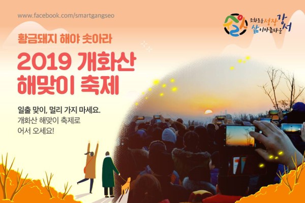 서울 강서구는 2020 새해를 맞아 주민들과 함께 행복과 번영을 기원하는 해맞이 행사를 개최한다. 이 날 행사는 2019년 1월 1일 개화산 정상 해맞이공원에서 7시부터 약 1시간 동안 진행된다.